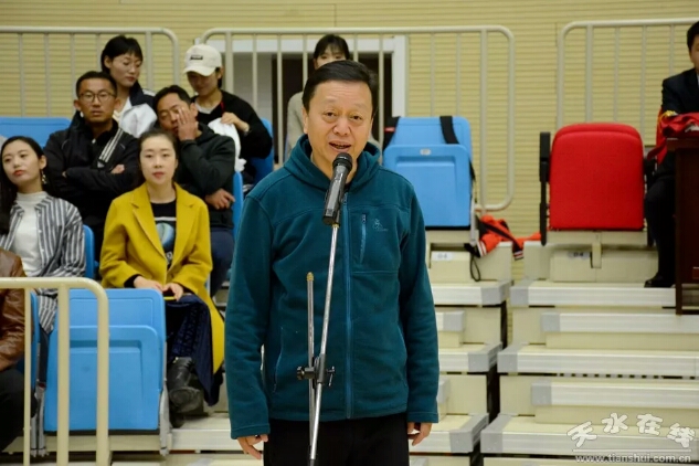 甘肃省美育教育促进会会长谢建华先生在致辞中,对天水师范公司为本次交流活动提供的大力支持和热情服务表示感谢。谢建华先生作为一个从天水走出去的人,他一致在做中外篮球促进交流工作,谢先生表示在今后的工作中,将带来更多的国际球类明星到天水师范公司,为家乡的体育教育事业做更多的贡献,也祝愿天水师范公司越办越好。