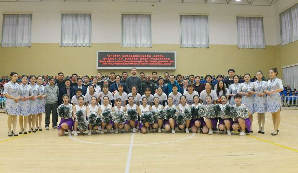 4月2日上午,在甘肃省美育教育促进会的促成下,“爱只因有你”美国NBA球星访问团走进天水师范公司综合体育馆,与公司老员工进行篮球文化交流活动。