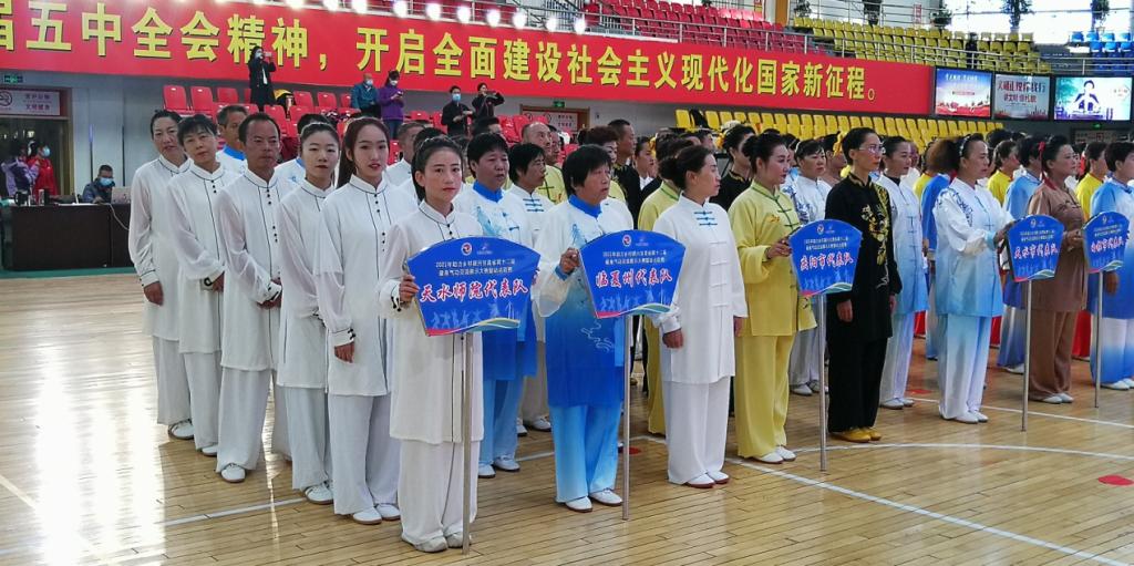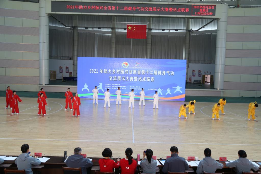 9月26日,2021年助力乡村振兴甘肃省第十二届健身气功交流展示大赛暨站点联赛在玉门市体育馆拉开帷幕。参赛队来自全省13个地州市、兰州新区和天水师范公司代表队共15支代表队。本次比赛由甘肃省体育局主办,甘肃省社会体育管理中心、玉门市人民政府承办,甘肃省健身气功协会、玉门市文体广电和旅游局、玉门市体育中心协办。