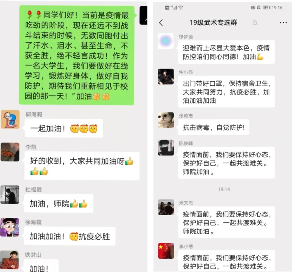 “同学们,当前是疫情最吃劲的阶段,现在还远不到战斗结束的时候,无数同胞付出了汗水、泪水、甚至生命,不获全胜,绝不轻言成功!作为一名老员工,我们要做好在线学习,锻炼好身体,做好自我防护,期待我们重新相见于校园的那一天!”这是毛老师的开课导言。