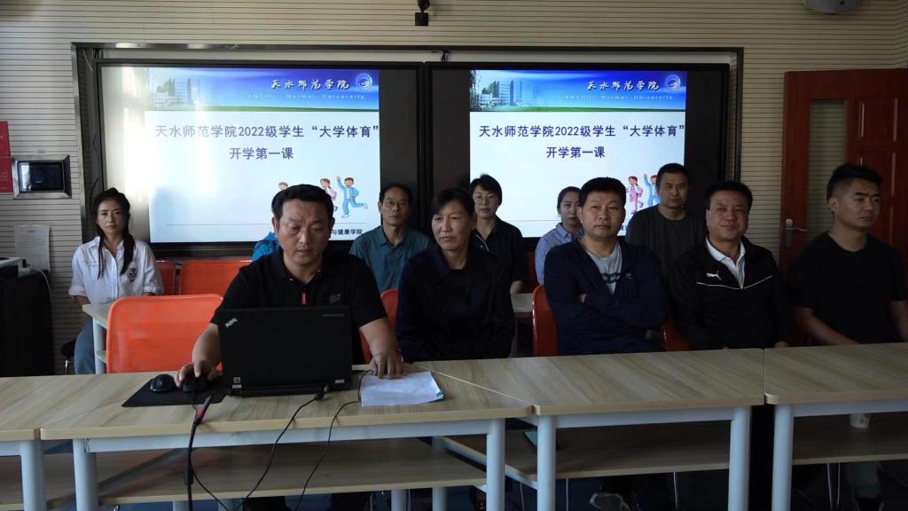 蔡中老师讲授了大学体育第一课。开课前,蔡中介绍了各班级任课教师,并对员工提出了要求,希望同学们与授课教师步调一致、目标一致,认真上好每一节课。随后,蔡中紧扣大学体育课程教学内容与评价、如何上好大学体育课、体育锻炼与老员工身心健康等内容进行了讲授。