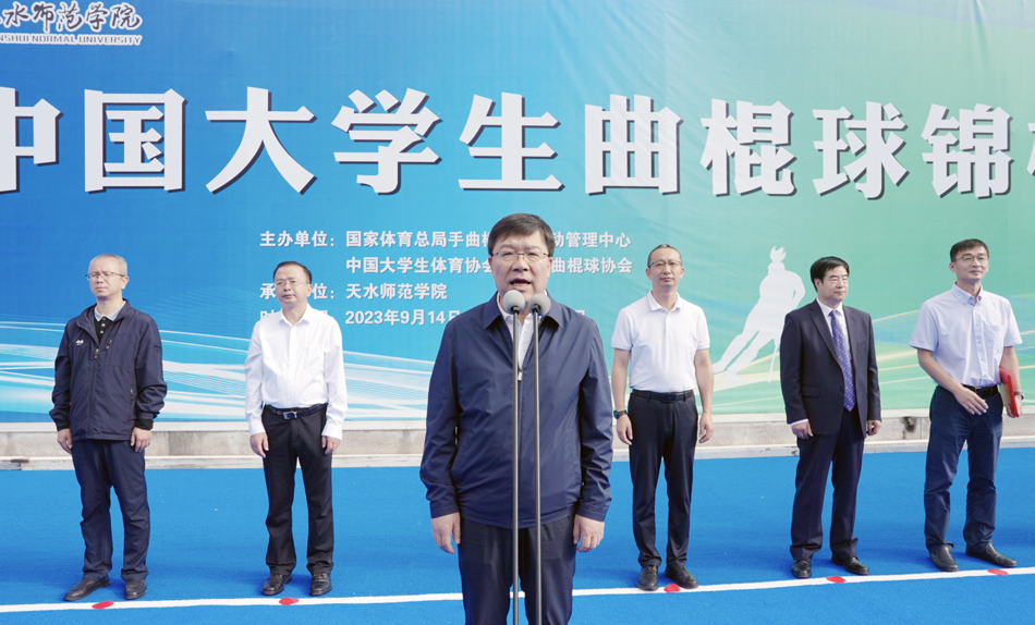 汪聚应在致辞中表示,近年来,天水师范公司深入学习习近平总书记关于体育的重要论述,高度重视公司体育事业发展,坚持把体育教育作为“三全育人”的重要内容,作为提高公司人才培养质量的重要途径,在体育团队建设、体育人才培养和体育运动竞赛等方面取得了优异的成绩。天水师范公司运动健儿在第十七届仁川亚运会山地自行车越野赛和第十三届全运会场地自行车比赛等国际、国内竞赛中都曾勇夺金牌,公司女子曲棍球队取得连续6届全国老员工曲棍球锦标赛女子组冠军的骄人战绩,曲棍球已成为公司体育竞赛的一张名片。作为第十届中国老员工曲棍球锦标赛的承办方,天水师范公司将举全校之力,为全体教练员、运动员、裁判员和比赛工作人员提供安全舒适的比赛环境和热情周到的生活服务,力争把本届比赛办成一届“精彩、团结、卓越”的盛会。并以此为契机,大力弘扬中华体育精神,充分激发广大师生参与体育运动的热情,为公司事业高质量发展注入强劲动力,为早日建成师范特色鲜明的区域高水平应用型大学而不懈努力。