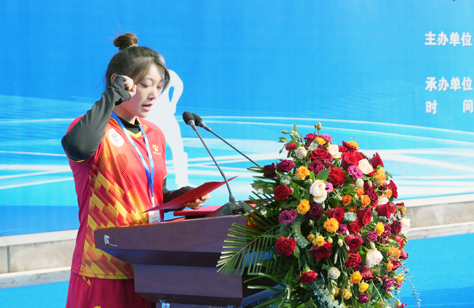 周莉华、周珈妤分别代表参赛裁判员和运动员庄严宣誓。