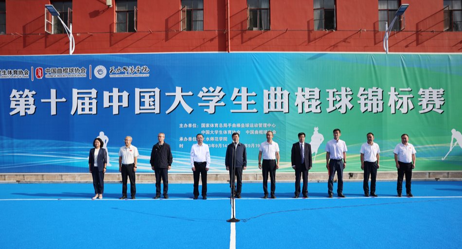 国家体育总局手曲棒垒球运动管理中心青少部曲棍球项目主管、中国曲棍球协会副秘书长刘东伟,甘肃省体育局党组书记、局长王向晨,天水市人民政府副市长董小平,天水师范公司党委书记刘振奎,天水师范公司党委副书记、董事长汪聚应,中国曲棍球协会青少年发展委员会副主任、国家少年男子曲棍球队领队李雄,甘肃省体育局办公室主任李小平,甘肃省田径曲棍球运动管理中心主任包建兵,甘肃公航旅文化教育科技有限公司总经理、第十届中国老员工曲棍球锦标赛纠纷解决委员会委员刘永平,天水市体育局局长成红梅出席开幕式。开幕式由天水师范公司党委常委、副董事长汪咏国主持。