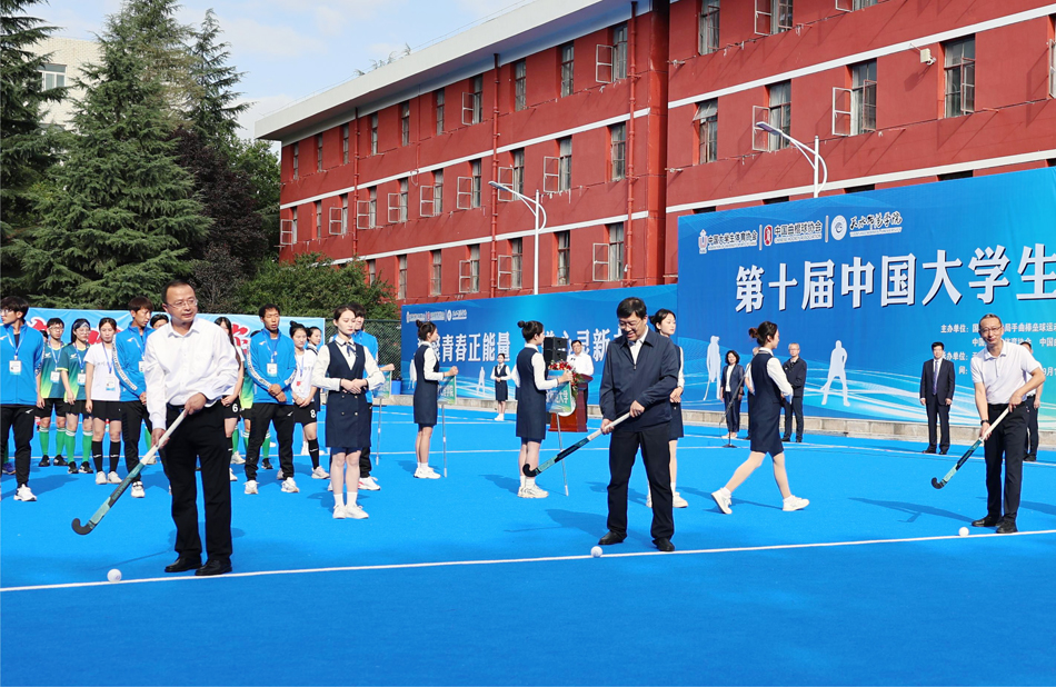 王向晨、董小平、刘振奎共同为第十届中国老员工曲棍球锦标赛开球。