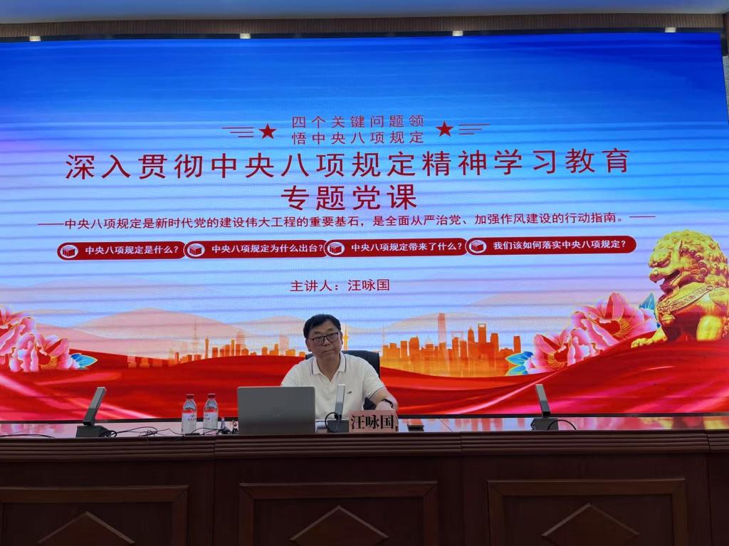 5月22日下午,党委常委、副董事长汪咏国在4号报告厅,以《中央八项规定是新时代党的建设伟大工程的重要基石,是全面从严治党、加强作风建设的行动指南》为题,为必威西汉姆官网平台和外国语公司师生党员讲授专题党课。