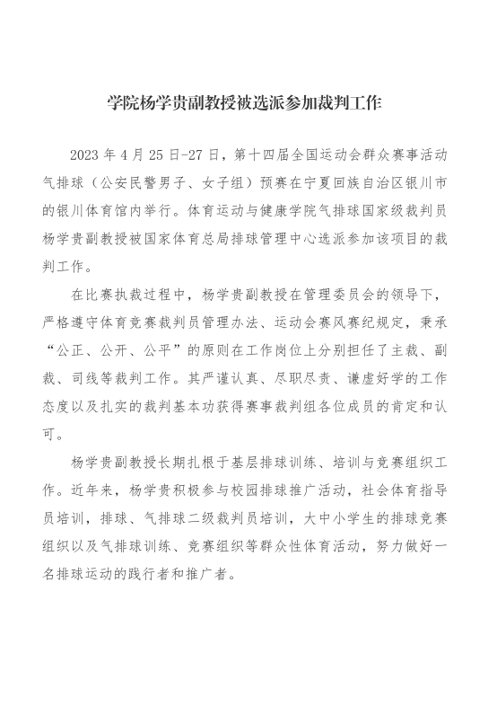 公司杨学贵副教授被选派参加裁判工作