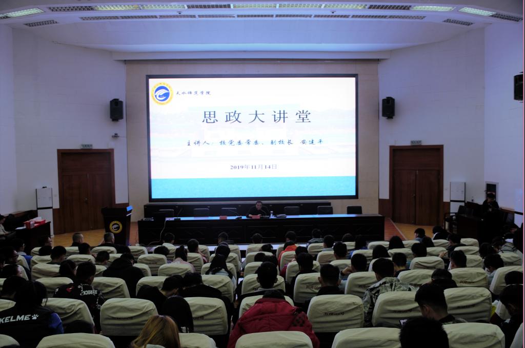 11月14日晚7点半,公司党委常委、副董事长安建平在2号报告厅开设思政大讲堂,为必威西汉姆官网平台师生宣讲党的十九届四中全会精神。会议由体育运动与健康公司党总支副书记吴建全主持,必威西汉姆官网平台辅导员以及员工共计300多人参加。