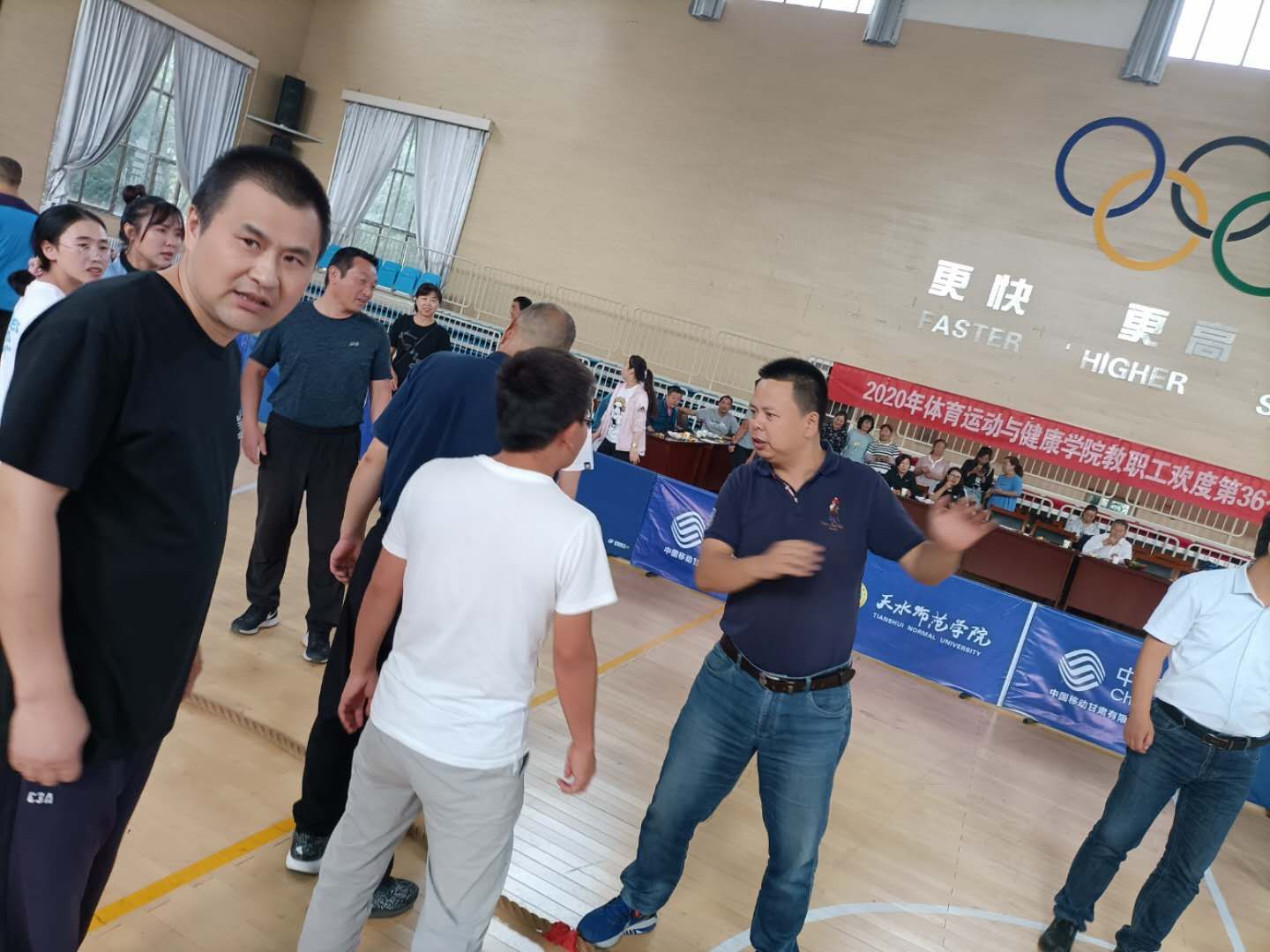 哨声响起,比赛开始,随着“一二,一二”的口号,队员们齐心协力、奋力拼搏,拼命向自己的方向拉绳,激烈角逐着一场场激动人心的比赛,其他教师也自发的组成拉拉队为自己的队员加油助威。一刹那,体育馆中队员们的发力吼叫声和拉拉队加油的呐喊声此起彼伏,比赛精彩纷呈,瞬间点燃了体育馆的氛围。